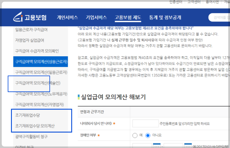 (9) 고용보험 사이트에서 조기재취업수당 인터넷 신청 및 모의계산 해보기